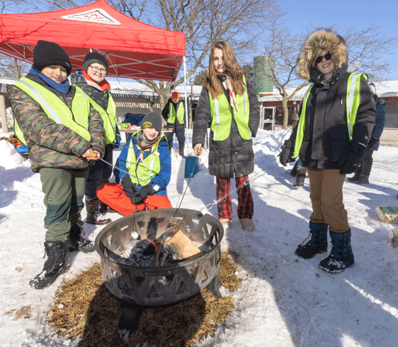 The 2nd Highland Creek Scouts served up the s’mores by the campfire that was set up behind the community centre. From left to right around the campfire: Kyrian, Ryhs, Arie, Bruce (leader), Delyla and Angus